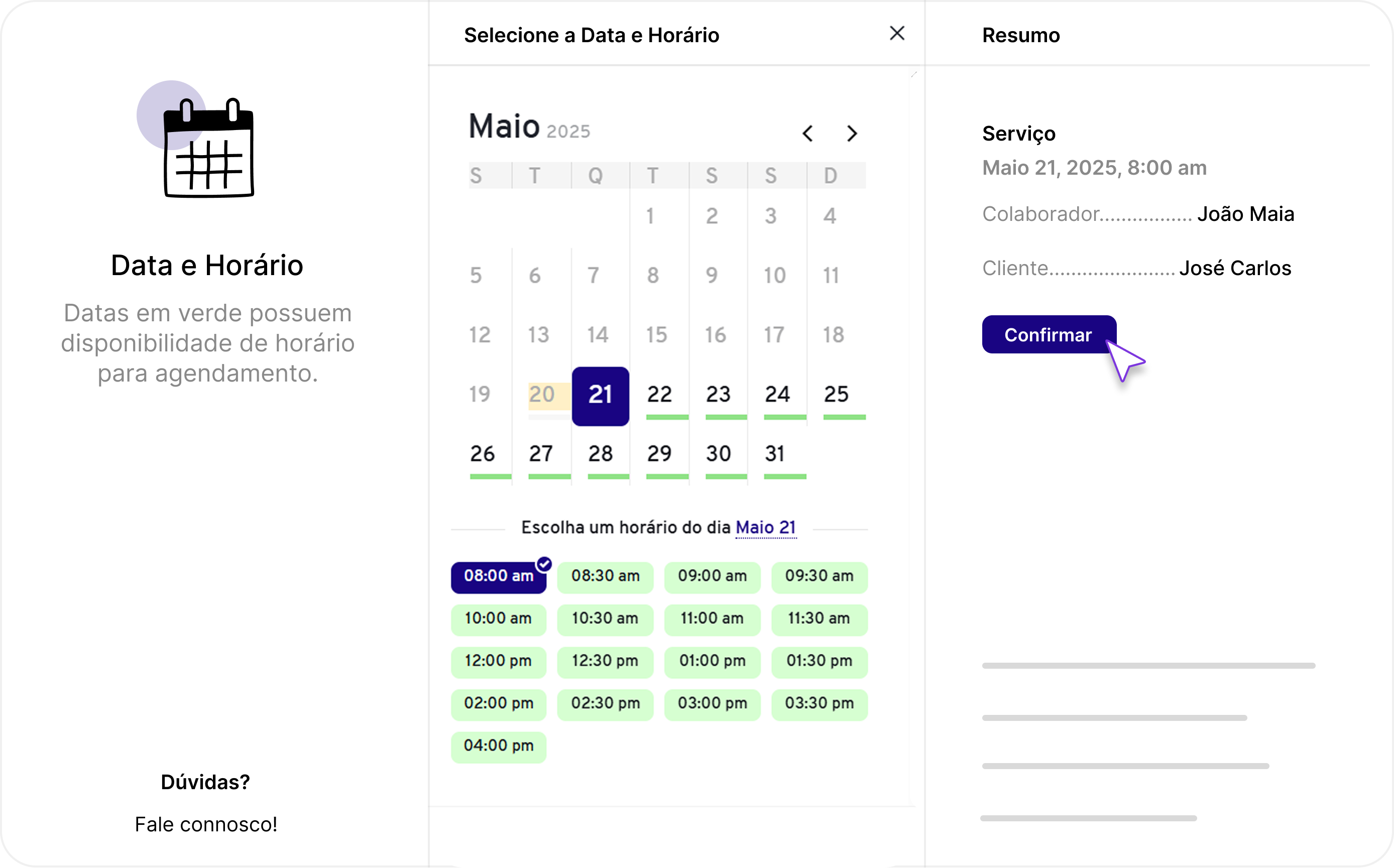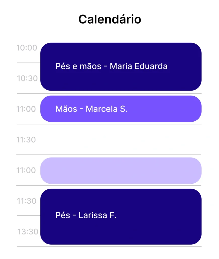 Visualização organizada dos agendamentos por dia, semana ou mês